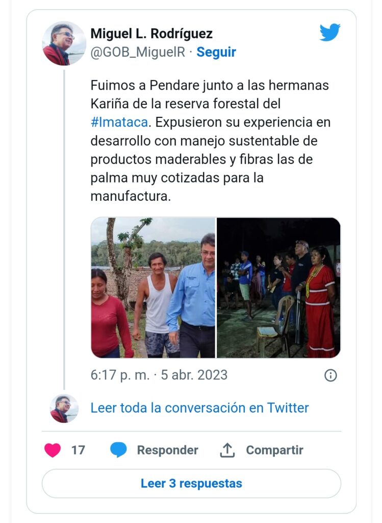 La información la dio a conocer el gobernador de la entidad, Miguel Rodríguez, por medio de su cuenta en la red social Twitter @GOB_MiguelR, donde reseñó que aspiran replicar la experiencia de esta comunidad indígena en la región.