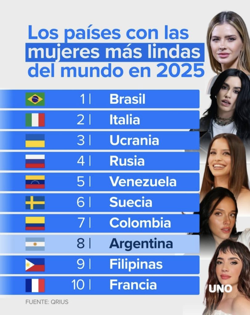 Un reciente ranking internacional que ha generado amplio debate en redes y medios ha revelado cuáles serían los países con las mujeres más lindas del mundo en 2025, según el sitio QRIUS, que midió tendencias culturales, impâcto en redes sociales y presencia mediática más que criterios científicos. Este listado ha encęndido la conversación global sobre los estándares de belleza contemporáneos y la representación de distintos países en la esfera pública.