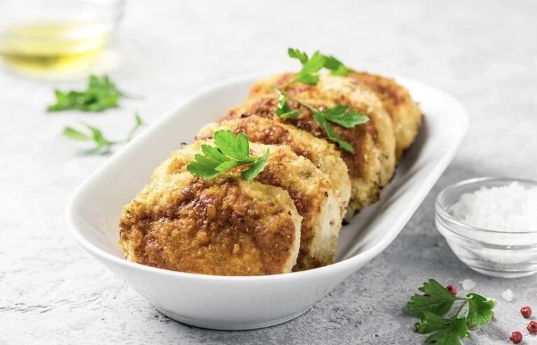 Las croquetas de pavo la haremos combinando proteína molida con cebolla, ajo y mantequilla, condimentada con sal, pimienta y un toque de paprika. Posteriormente, formaremos las bolitas en forma de croquetas o nuggets, pasaremos por un rebozado especial y freiremos.