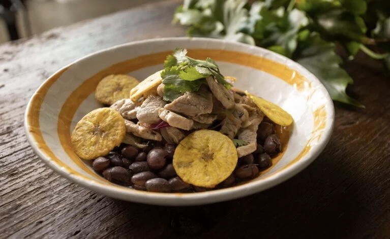 Para su preparación es necesario una buena sartén. Sus ingredientes se cocinan simultáneamente: frijoles negros o alubias, carne de cerdo sazonada y tostones de plátano verde frito.