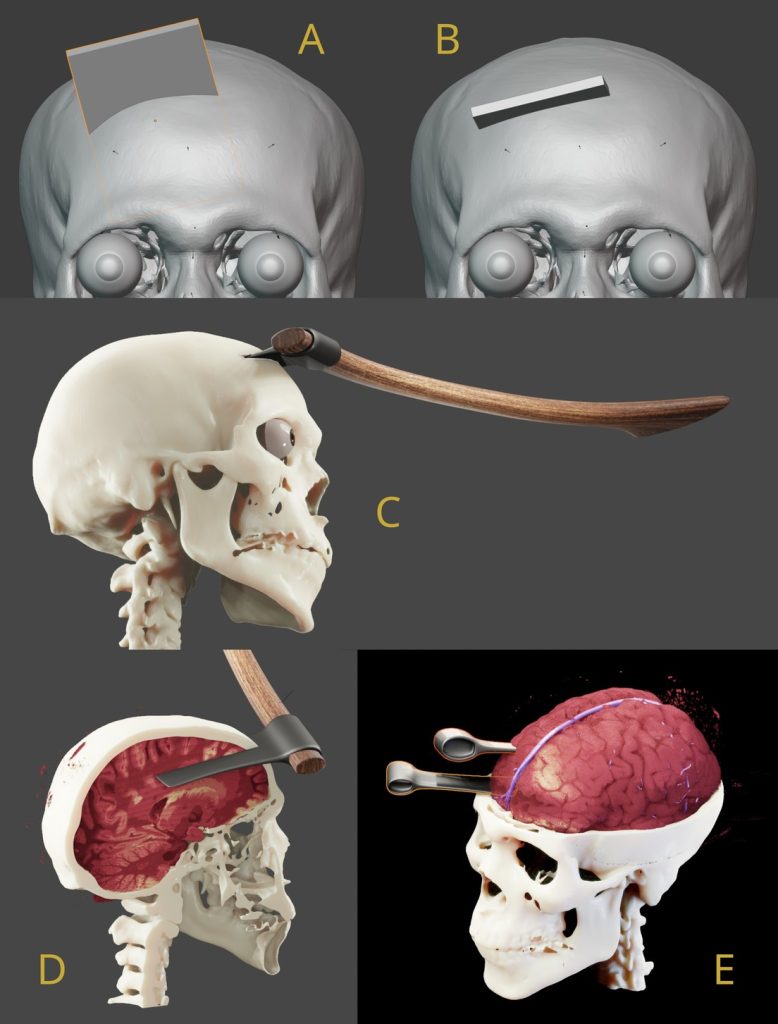 Posteriormente, se añadieron heridas digitales sobre la ceja derecha para que coincidieran con las del faraón, y con la ayuda de cráneos digitales con el cerebro expuesto, se pudo determinar con qué tipo de hacha habrían matado al faraón. Las imágenes revelaron que una de las heridas penetró en su cerebro.