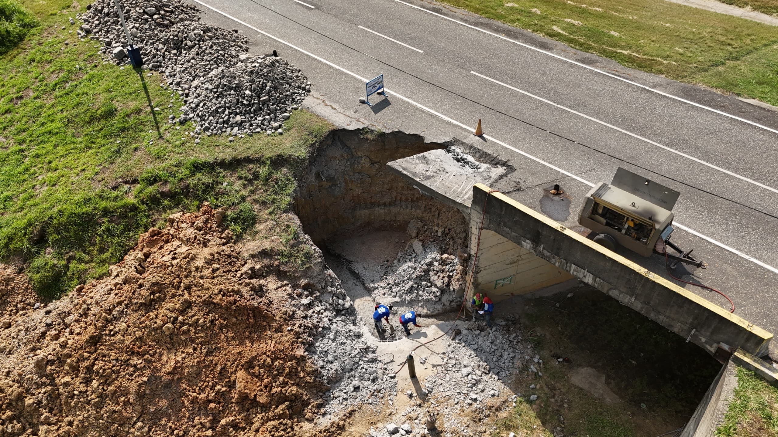 Este jueves 25 de octubre, el gobernador de Portuguesa, Primitivo Cedeño, junto a un equipo de obreros se encuentran trabajando en la falla montelar de la autopista general sentido este de José Antonio Páez.