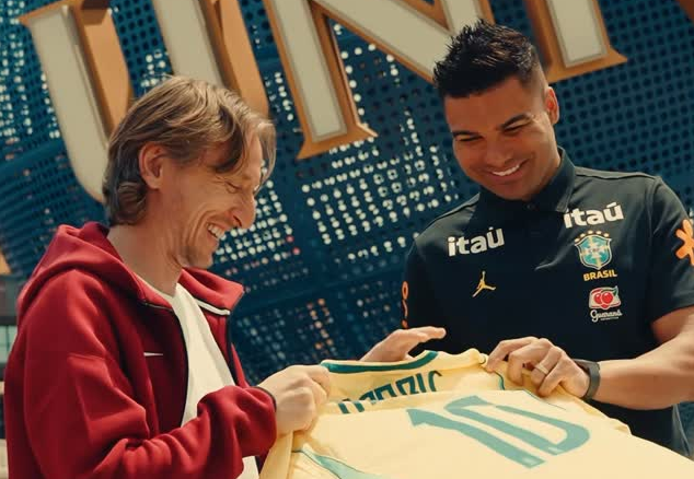 El brasileño aprovechó para bromear diciendo: «Tienes que jugar para nosotros», a lo que el croata responde con humor, para posteriormente obsequiarle una camisa de Brasil que lleva el dorsal número 10 pero con el nombre del croata.