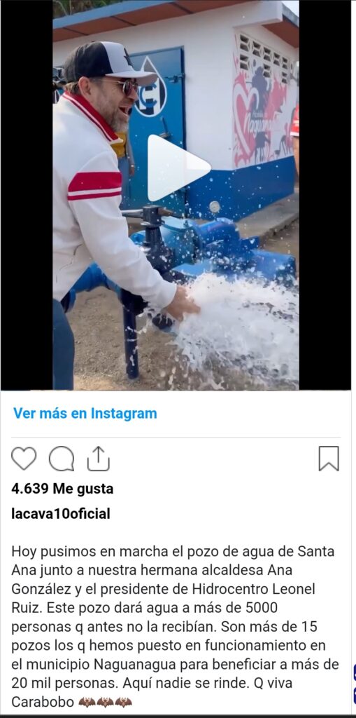 El gobernador de la región, Rafael Lacava, indicó que «son más de 15 pozos los que se han colocado en funcionamiento en el municipio Naguanagua que favorecen a más de 20 mil personas», según publicación en la red social Instagram.