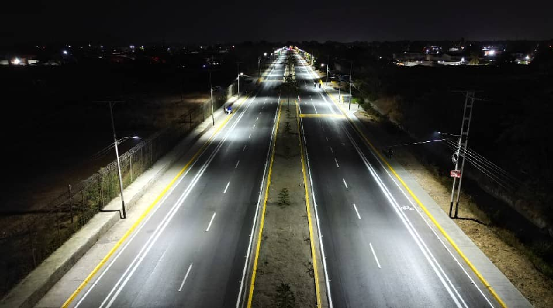 Los trabajos abarcaron la construcción de aceras y brocales, siembra de 600 pinos, instalación de 170 luminarias, 800 delineadores viales y circuito cerrado para la seguridad de los conductores.