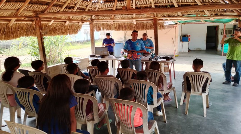 El equipo del Infocentro Bolívar realiza actividades de formación en Robótica Educativa y TIC (Tecnología de la Información y Comunicación), dirigidas a niños y niñas de comunidades indígenas Yekuana, Jivi y Pemón, del municipio Maripa, en el estado Bolívar. El objetivo es acercar las nuevas tecnologías y herramientas digitales de una manera lúdica y educativa a todos los niños y niñas de la Patria.
