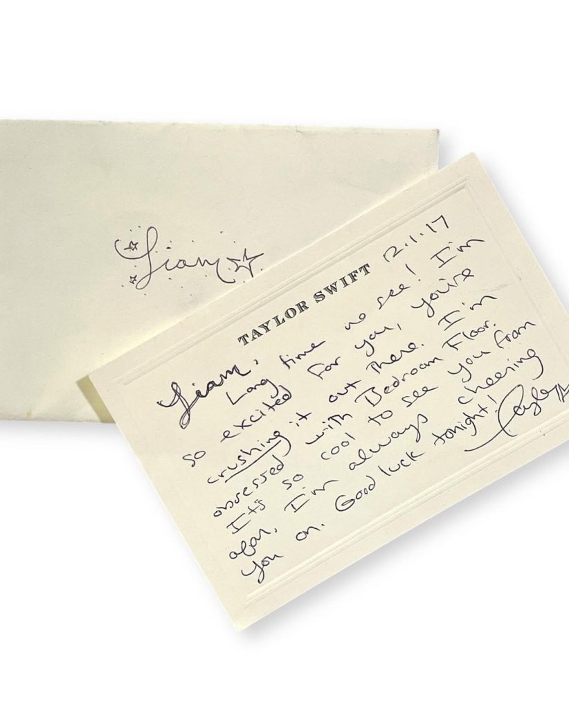 Swift acompañó el manuscrito con varios artículos de merchandising de su era ‘Reputation’, álbum que promocionaba en aquel entonces. Este gesto personal convirtió al paquete en algo más que un simple saludo protocolario, transformándolo en un testimonio tangible de la relación profesional y el respeto mutuo que compartían las dos figuras de la industria musical.