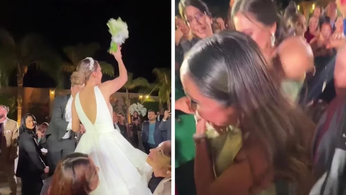 “Cuándo ya te urge casarte”, escribió la usuaria de TikTok Fer Cervantes en una publicación que en pocos días acumuló más de 10 millones de reproducciones. Allí se puede ver el momento exacto en el que la novia lanza el ramo de su bodas. Una joven logró atraparlo y, cuando todo debió finalizar allí, apareció una mujer que se le tiró encima y comenzaron a tironear por el “preciado” tesoro.