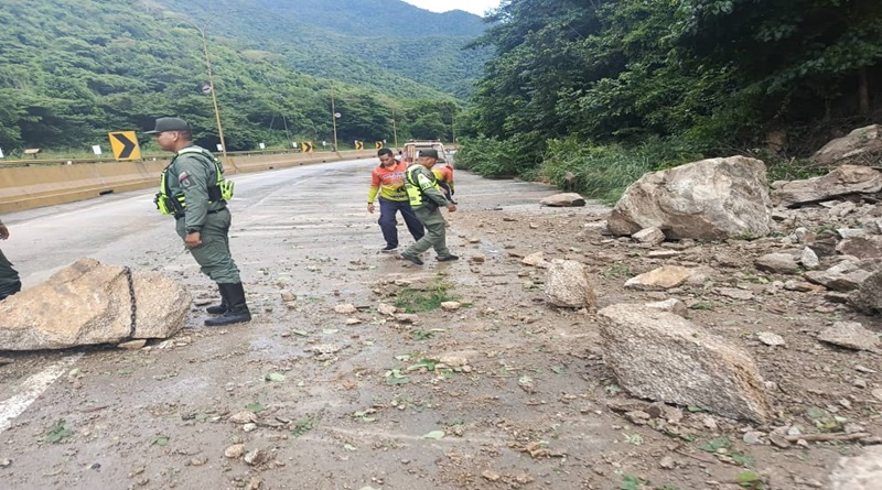 La Gobernación del estado Carabobo, a través del Instituto Autónomo para la Administración, Mantenimiento y Conservación de la Vialidad (Invialca), realizaron trabajos de remoción de tierra y escombros en el kilómetro 184+600 causados por las fuertes lluvias en la autopista Valencia-Puerto Cabello.