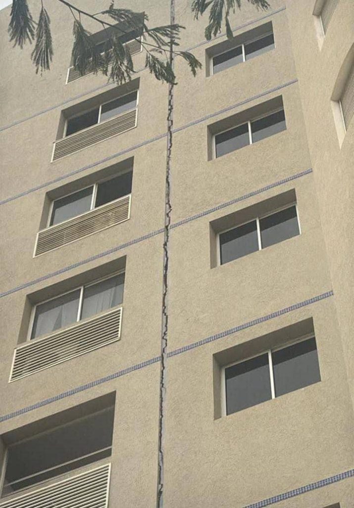 Puertas y ventanas desalineadas: varios edificios muestran puertas que ya no cierran correctamente, ventanas que no cierran completamente o marcos deformados.