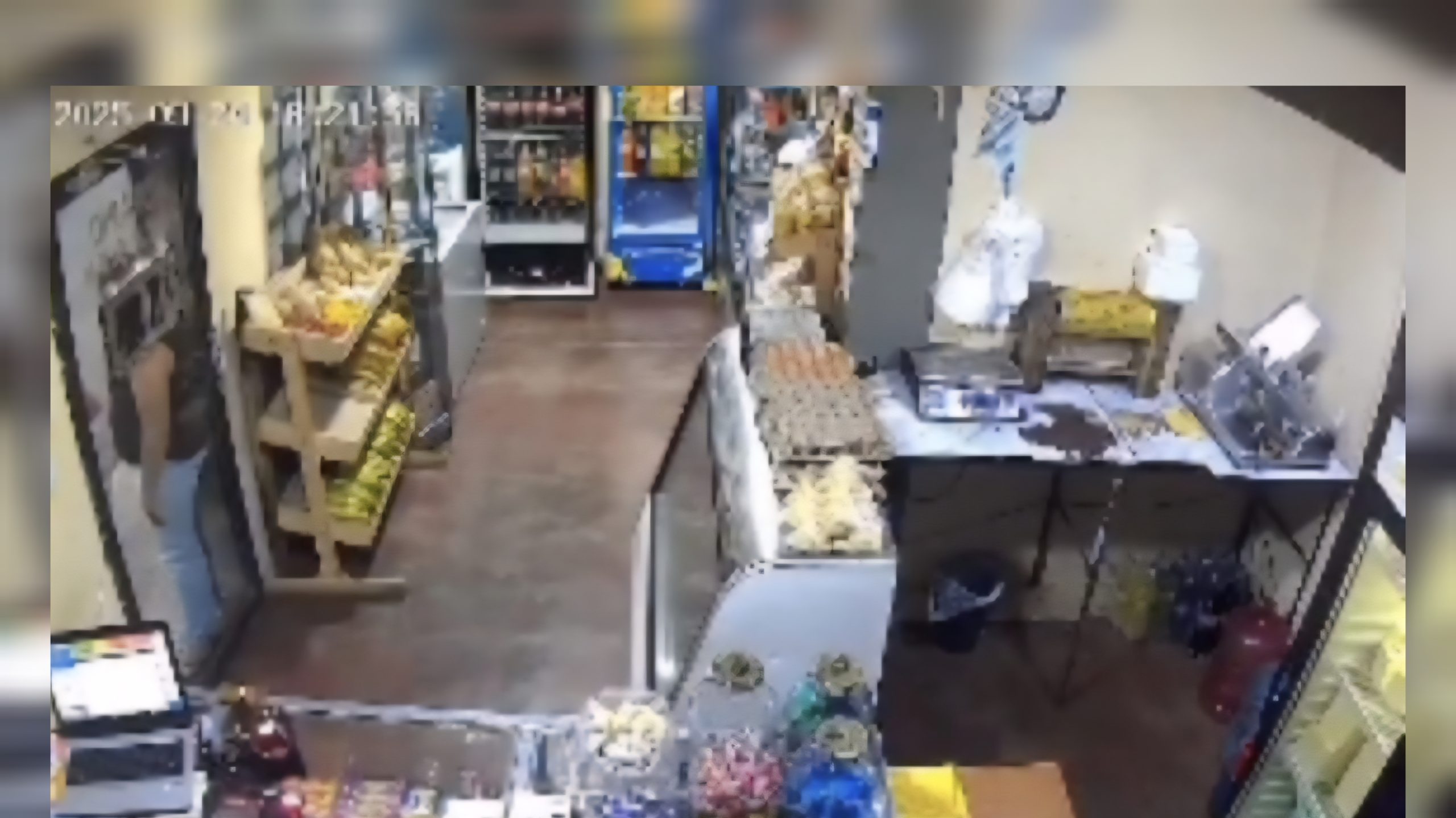 Las imágenes de una cámara de seguridad muestran a una vendedora que permanecía fuera del establecimiento cuando inició el sismo. En el video se observa cómo la trabajadora se aleja de inmediato, mientras dentro del local todo se mueve con fuerza a causa de la sacudida.