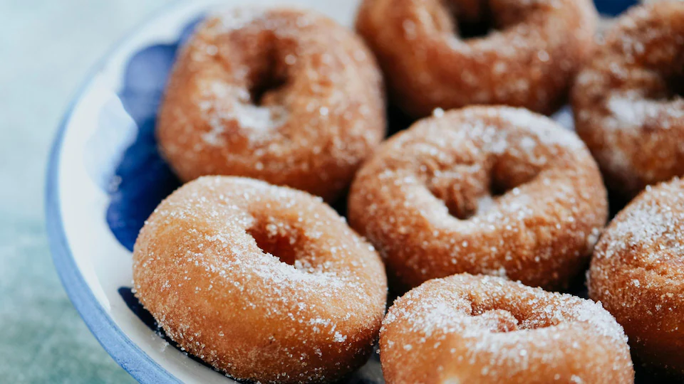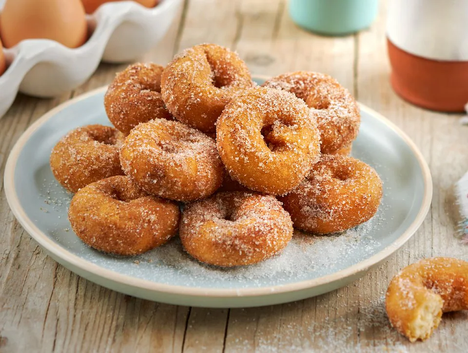 Los aros resultantes deberán tener unos 5–6 cm de diámetro, procurando que todos tengan un tamaño similar. Calienta abundante aceite a 170°C. Fríe las rosquillas en tandas pequeñas, durante unos 2–3 minutos por cada lado, hasta que estén doradas de forma uniforme. Retira y deja escurrir sobre papel absorbente. Espolvorea con azúcar glas o reboza en azúcar normal mientras aún estén templadas.