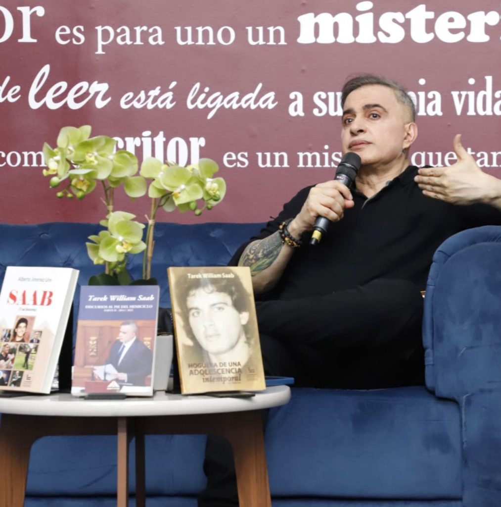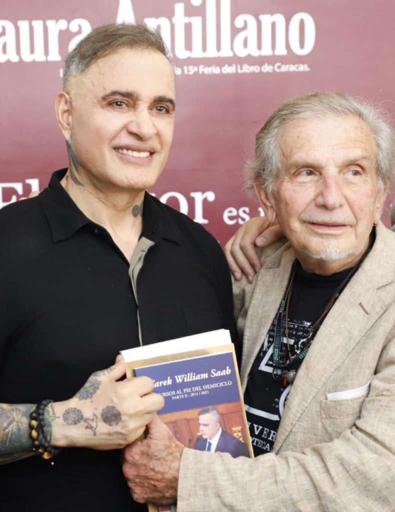 El fiscal general de la República y poeta Tarek William Saab, participó presentando su obras este viernes en la XV Feria del Libro de Caracas, que se desarrolla en los espacios de la Galería de Arte Nacional (GAN): en donde el laureado escritor venezolano Luis Alberto Crespo elogió la dilatada trayectoria literaria del “Poeta de la Revolución” destacando no solo la notable calidad de su contenido poético ( el cual ha prologado desde sus inicios ) sino también el rasgo “valiente y justiciero” de Saab que lo caracterizado desde muy joven hasta la presente fecha.