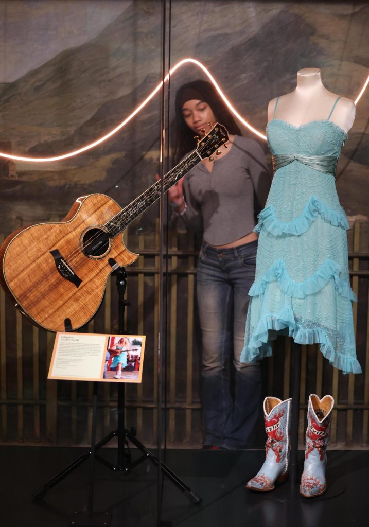 Los vestidos y complementos se ubican junto a premios musicales, guiones gráficos y elementos nunca antes vistos del archivo de Taylor Swift, que explorarán su infancia y su legado discográfico, indicó V&A.