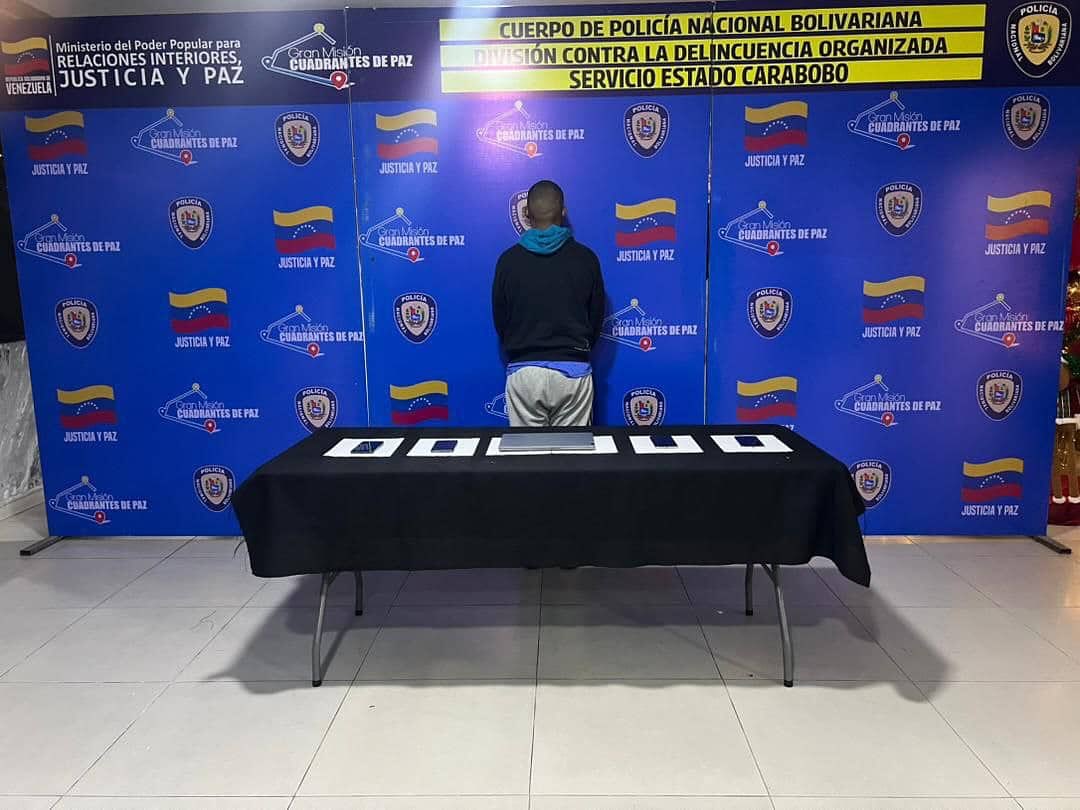Funcionarios del Cuerpo de Policía Nacional Bolivariana adscritos a la División Contra la Delincuenci@ Organizada del estado Carabobo, aprehëndieron a un sujeto de 24 años de edad, quien presuntamente se dedicaba a estaf@r personas mediante el negocio de criptomonedas.