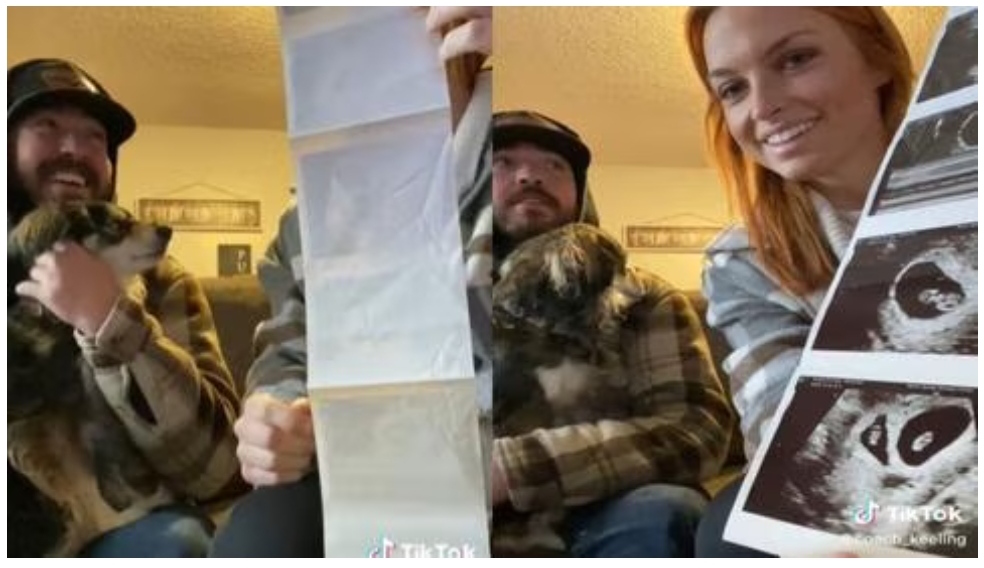 Keeling (@coach_keeling), de los Estados Unidos, se encontraba en la sala de su casa junto a su novio. Ella abrió el ultrasonido y lo primero que hizo fue mostrar los resultados a la cámara. De pronto, el hombre quien acaricia al perrito, riendo dice: “tendremos gemelos”.