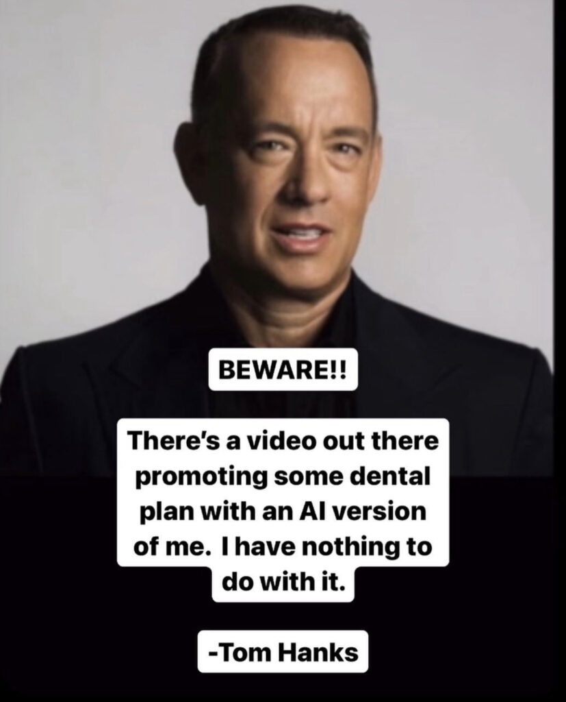 Hace unos días comenzó a circular un video en el que aparentemente sale Tom Hanks promocionando una marca dental, sin embargo, quien aparece en la campaña publicitaria es una réplica del actor que se creó sin su consentimiento, por lo que se convirtió en una víctima del fraude de la inteligencia artificial.