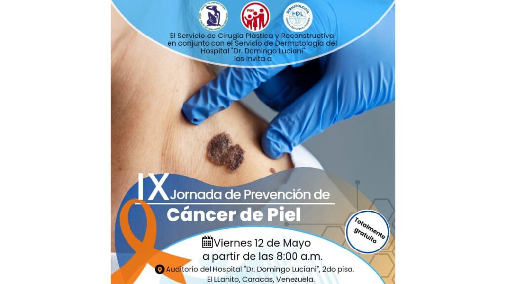 En el Hospital Dr. Domingo Luciani se llevará a cabo el viernes 12 de mayo la IX Jornada de Prevención de Cáncer de Piel, totalmente gratuita, por el equipo de residentes y especialistas del Servicio de Cirugía Plástica y Reconstructiva en conjunto con el Servicio de Dermatología del hospital.