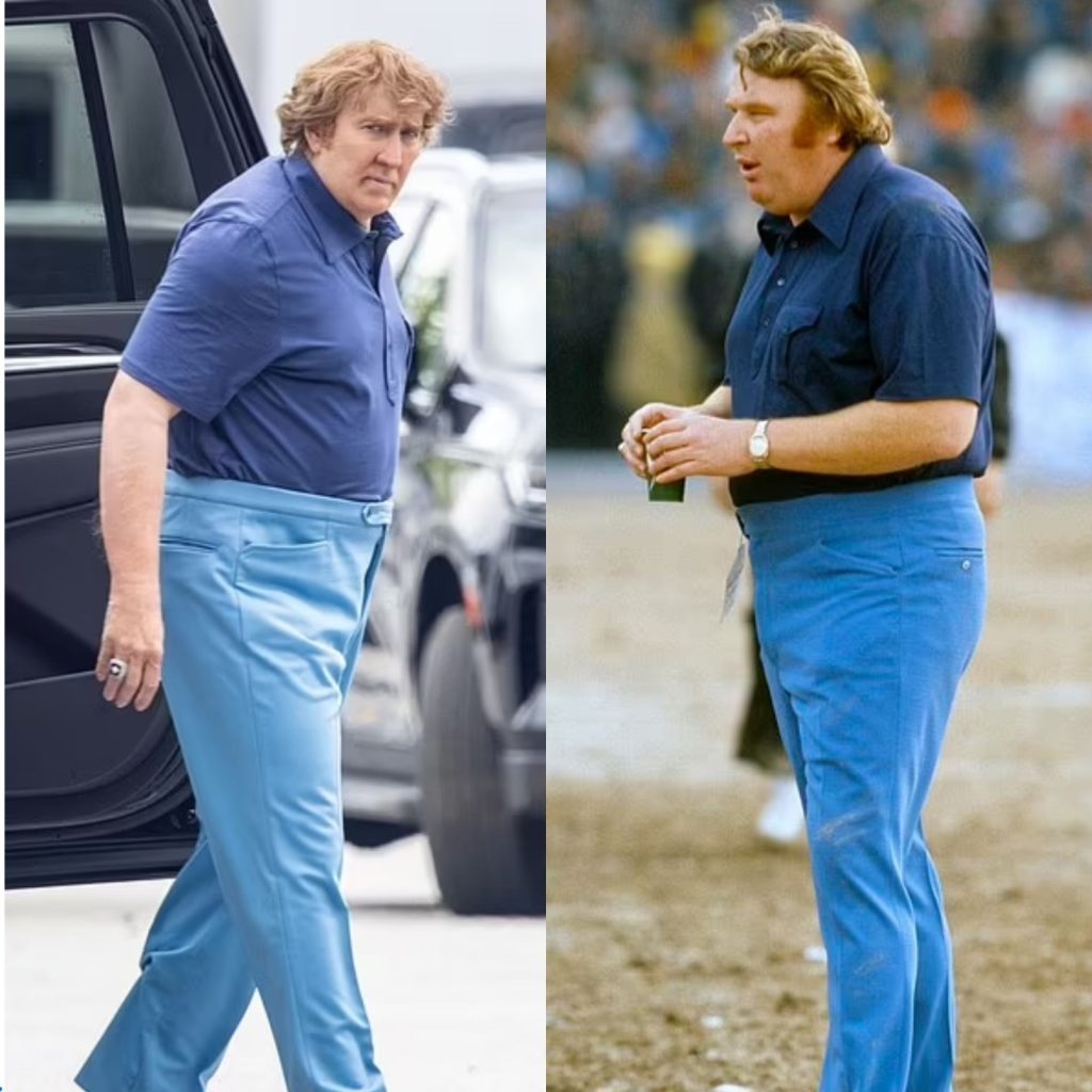 Este es uno de los looks más reconocibles de John Madden en la década de los 70. De hecho, al comparar fotos de ambos, el parecido entre ambos es innegable. Y es que Nicolas, según cercanos, se ha entregado en cuerpo y alma al papel, en búsqueda de lo que podría ser su segundo Oscar.