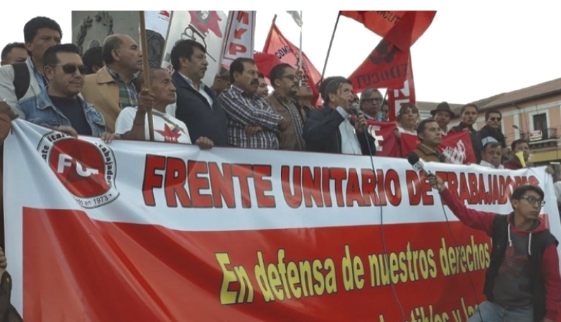Trabajadores agrupados en el Frente Unitario expresaron su rechazo a la propuesta de reforma en el sistema de seguridad social promovida por el Gobierno del presidente de Ecuador, Guillermo Lasso.
