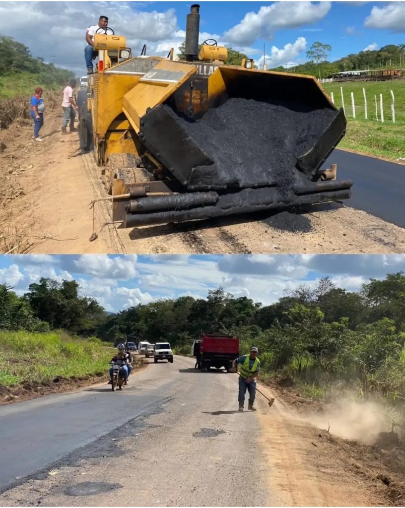 Se están colocando colocado toneladas de asfalto en la troncal 10, específicamente en el tramo que conecta Guasipati con El Callao. Esta labor forma parte de las políticas de rehabilitación de infraestructura vial que benefician directamente a los habitantes del municipio Roscio y de todo el estado Bolívar.