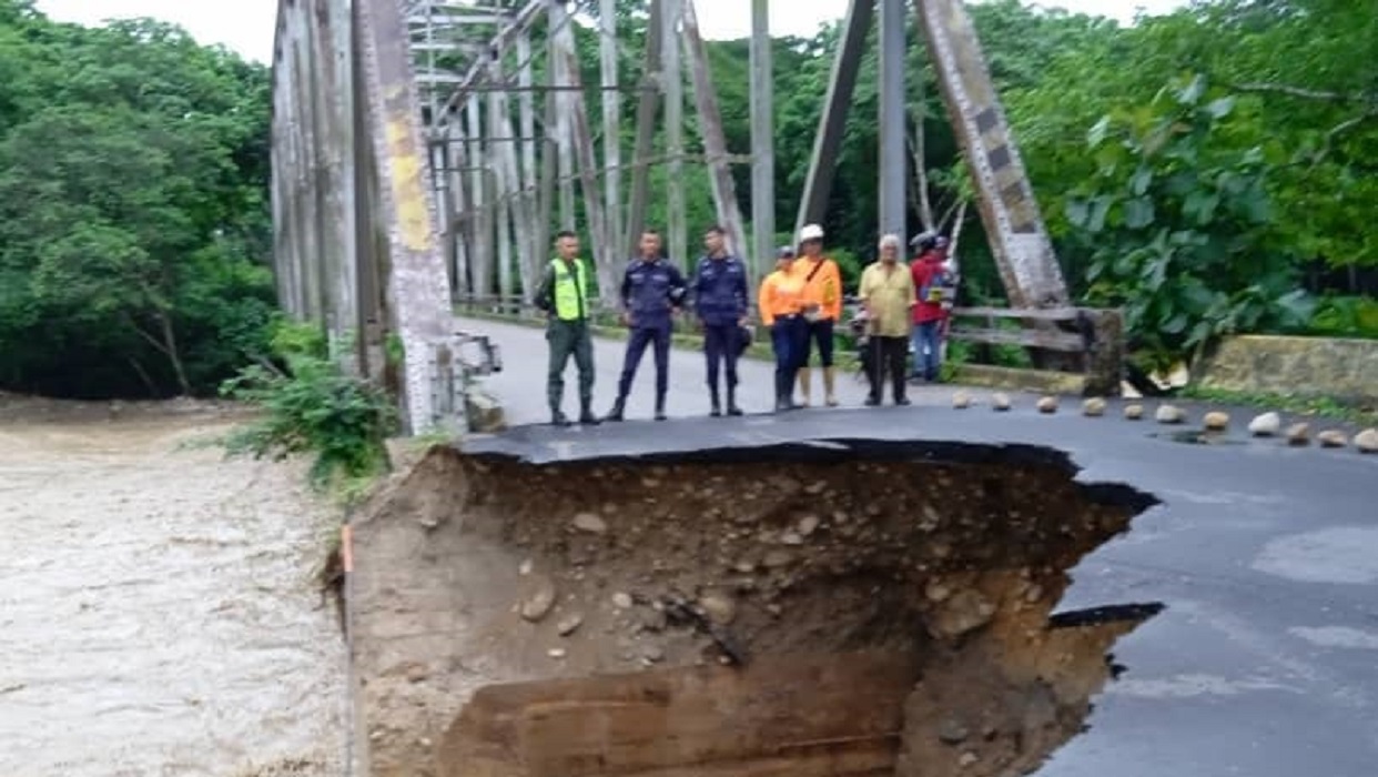 En la Troncal 5, a la altura del sector La Yuca, municipio Cruz Paredes, el socavamiento de una de las márgenes, destrozó el asfalto y las autoridades tuvieron que suspender el paso de vehículos.