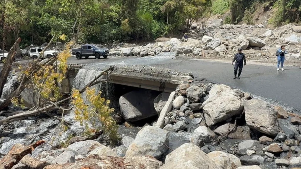 En el lugar, también estaba presente el ministro para Obras Públicas, Juan Luces, quien detalló que llevan a cabo labores de mitigación de riesgo y de alto impåctø para reactivar el tránsito, especialmente para vehículos de carga pesada.
