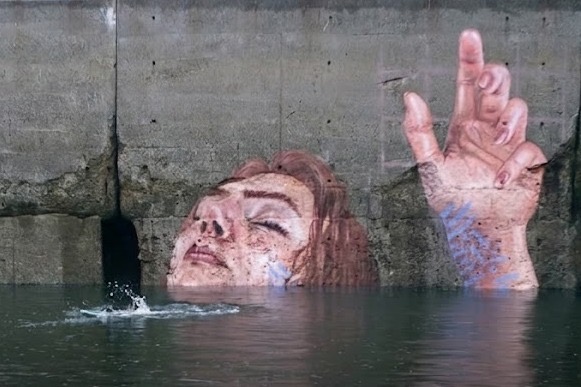La obra muestra a una mujer entrelazada con elementos naturales, como corales y un árbol en crecimiento, que se revelan con nitidez cuando la marea baja y quedan parcialmente sumergidos al subir el nivel del agua. Esta interacción constante genera la ilusión de que la figura emerge de las profundidades, estableciendo un diálogo visual donde la naturaleza no es solo el lienzo, sino también la protagonista del movimiento de la obra.