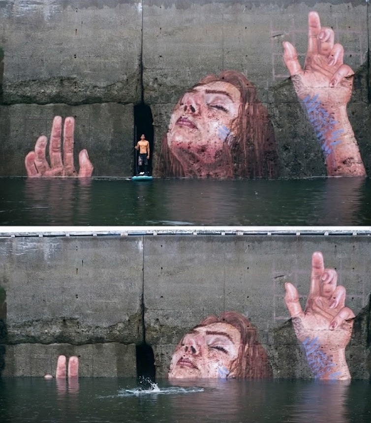 El artista hawaiano Sean Yoro, mundialmente conocido como Hula, transformó el puerto de Saint John en un escenario artístico sin precedentes al pintar un mural gigante utilizando el océano como su propia escalera. Para lograr esta hazaña, el muralista trabajó sobre una tabla de remo, aprovechando las oscilaciones de las mareas de la Bahía de Fundy, famosas por ser unas de las más altas del mundo.