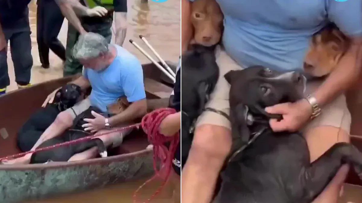 En una muestra de valentía y amor, un hombre en Brasil se convirtió en un símbolo de esperanza y compasión humana tras rescatar a sus cuatro perros en medio de las devastadoras inundaciones que golpearon la región. Esta historia, ocurrida en la ciudad de Porto Alegre, tocó los corazones de personas en todo el mundo, demostrando el inquebrantable vínculo entre un hombre y sus mascotas.