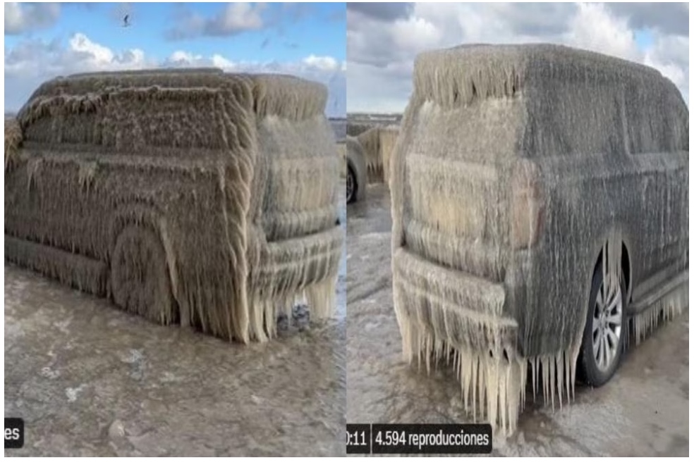 En ese sentido, el hielo se acumuló en el vehículo, incluso las llantas, lo que generó una imágen impresionante.