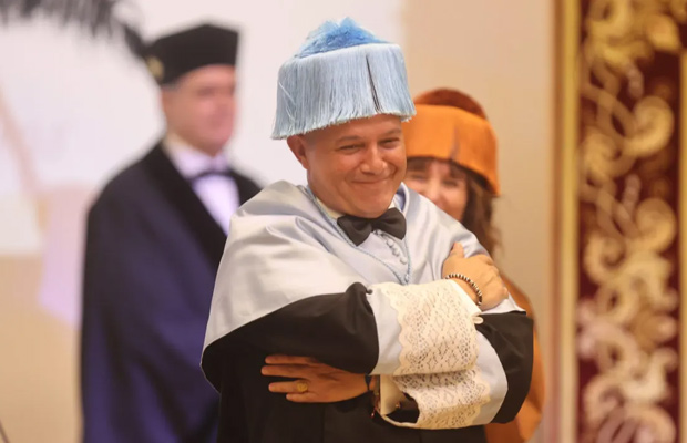 En un acto solemne celebrado en la Escuela Técnica Superior de Ingeniería de la referida casa de estudios, el artista recibió el birrete laureado, el libro de la ciencia, el anillo de la antigüedad y la medalla, como símbolos de su nuevo estatus.
