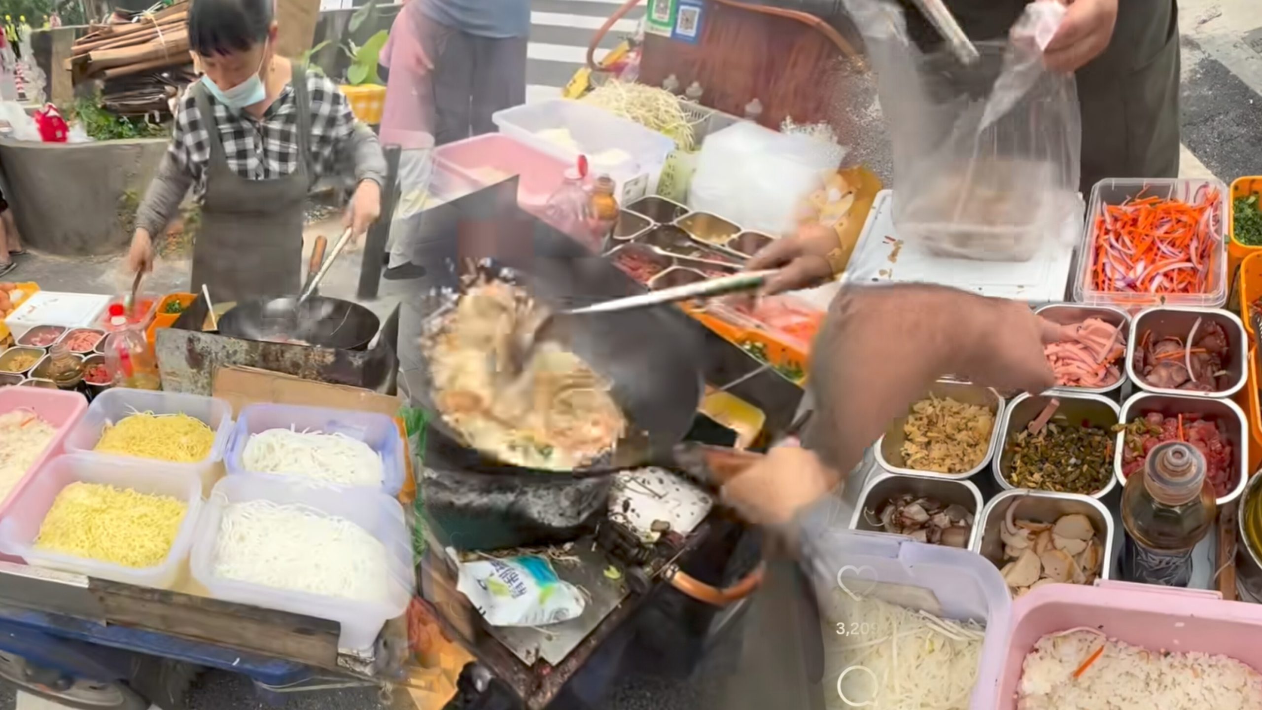 En el video se puede observar que lo primero que se hace es verter huevo directamente en el sartén caliente, creando la base del plato. A continuación, la cocinera añadió cuatro tipos de proteínas seleccionadas por el cliente, que fueron sofriéndose en el fuęgo mientras la cámara registraba cada movimiento, generando curiosidad y admiración entre los seguidores.