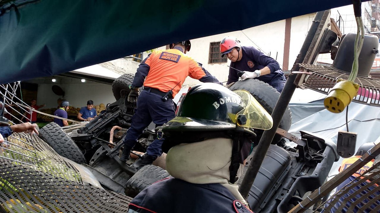 Asimismo, señaló que «efectivos del C.B.C. Realizaron el desalojo preventivo a comerciantes informales de la zona», en el hecho automóvil habría impactado contra un puesto de hortalizas que se encontraba debajo del lugar y dos vehículos tipo moto.