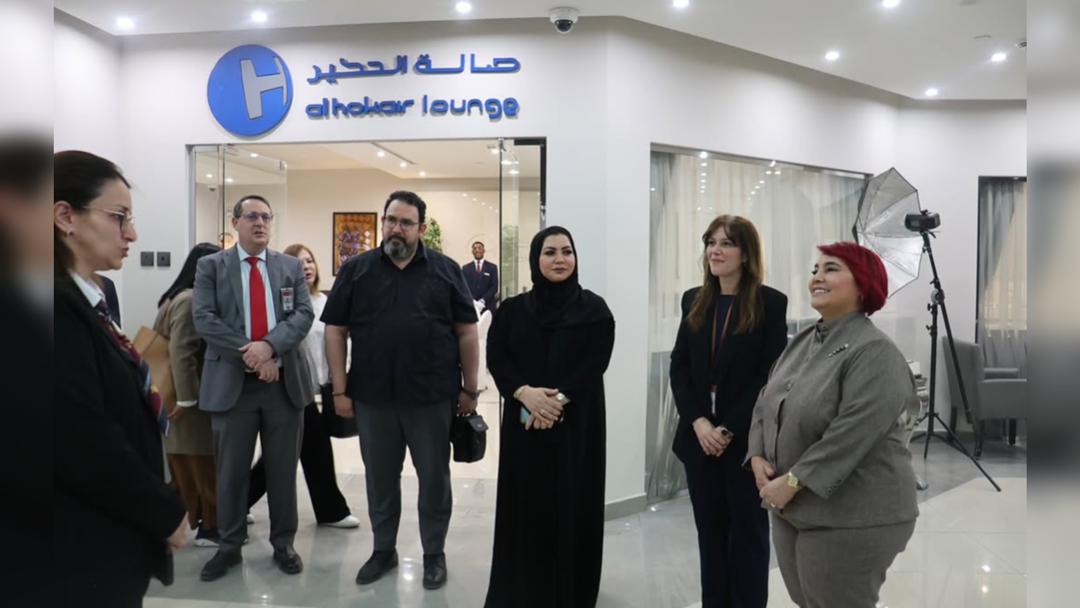 La Ministra Leticia Gómez, acompañada por las autoridades venezolanas, fue recibida por la directora del instituto, Amel Al Atwi, junto a Kenza Mezache, Gerente de Relaciones Internacionales de la Compañía para la Educación y el Desarrollo de la región MENA, y Warren David Viljoen, Director Académico.