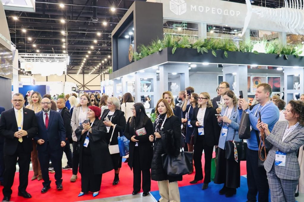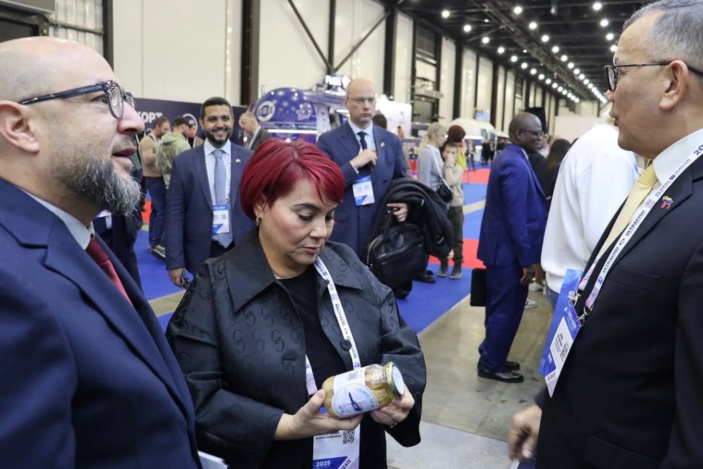 La ministra del Poder Popular para el Turismo, Leticia Gómez, junto al embajador de Venezuela en Rusia, Jesús Salazar Velásquez, participaron en el VIII Foro Mundial de Pesca y Exposición de Mariscos Rusia 2025, que se celebra en San Petersburgo del 22 al 24 de octubre.