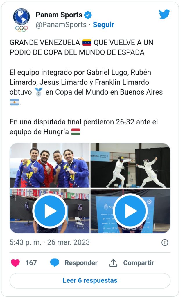 Al respecto, Rubén Limardo, destacó estar muy contentos de participar en una final como equipo. “Nos da mucha confianza para participar en la clasificación a los Juegos Olímpicos París 2024, que será bastante complicada, hay muchos equipos de alto nivel”.