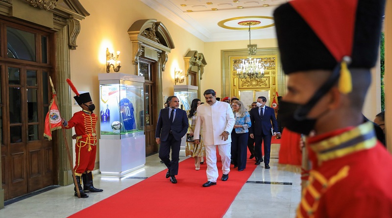 En el Palacio Presidencial Caraqueño, Benedetti saludó efusivamente al presidente Maduro, con quien intercambió presentes y símbolos bolivarianos. El embajador insistió en la prioridad que la gestión del presidente colombiano Gustavo Petro dará a la regularización del comercio binacional, la apertura fronteriza y los lazos de la historia gloriosa que une a ambas naciones.