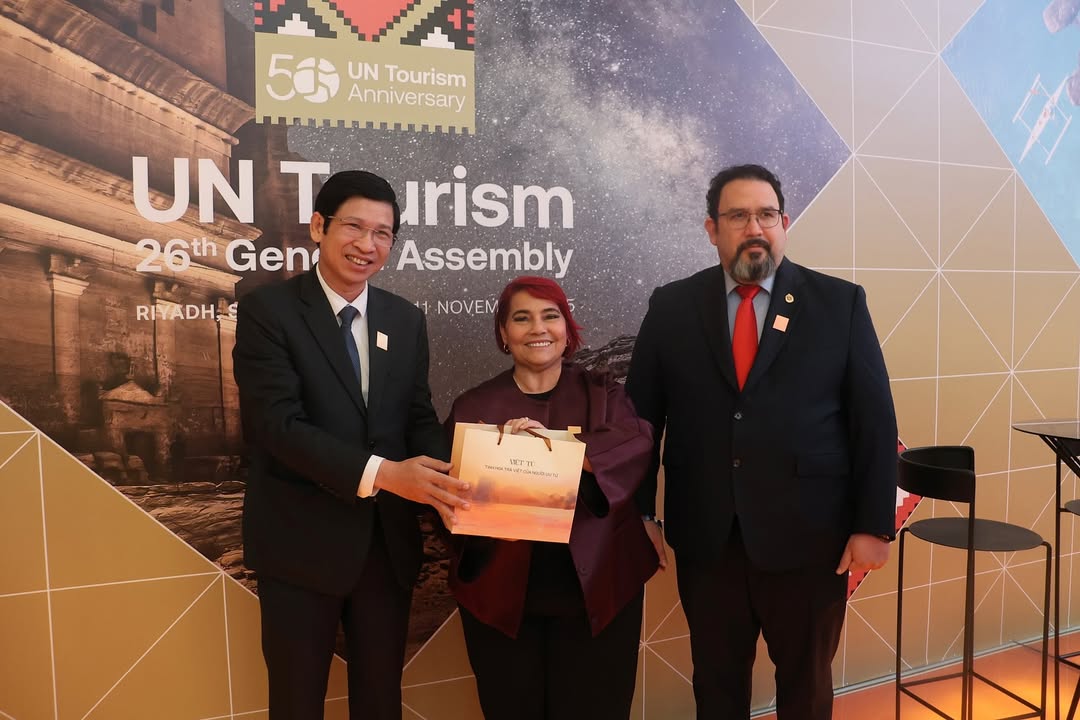 La ministra de Turismo de Venezuela, Leticia Gómez, continúa con una intensa agenda de trabajo en la 26ª Asamblea General de ONU Turismo, que se celebra en Riad, capital de Arabia Saudita. Desde allí sostuvo un amistoso y productivo encuentro con Hồ An Phong, viceministro de Cultura, Deportes y Turismo de Vietnam. Ambas autoridades coincidieron en la solemne ceremonia de apertura, un evento que congregó a ministros, funcionarios y líderes del sector turístico de diversas naciones.