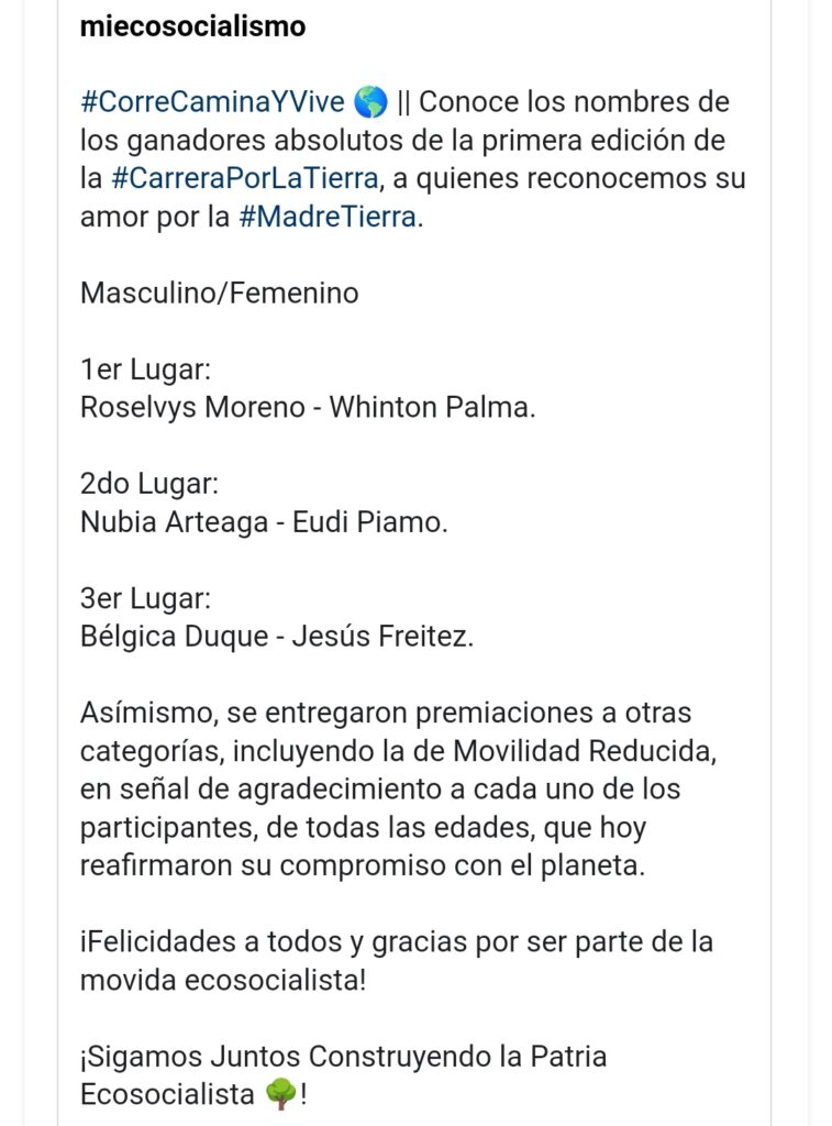 La jornada contó con la asistencia de dos mil 300 participantes comprometidos en dejar su huella en cada paso, apostando a un planeta más sano y lleno de vida, refiere un mensaje publicado en la cuenta de la red social Instagram del Ministerio para el Ecosocialismo @miecosocialismo.