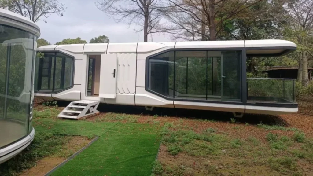 Estas cápsulas futuristas tienen aire acondicionado, luces led, baño, cocina, ducha y dos habitaciones y miden 12 metros de largo por tres de ancho.
