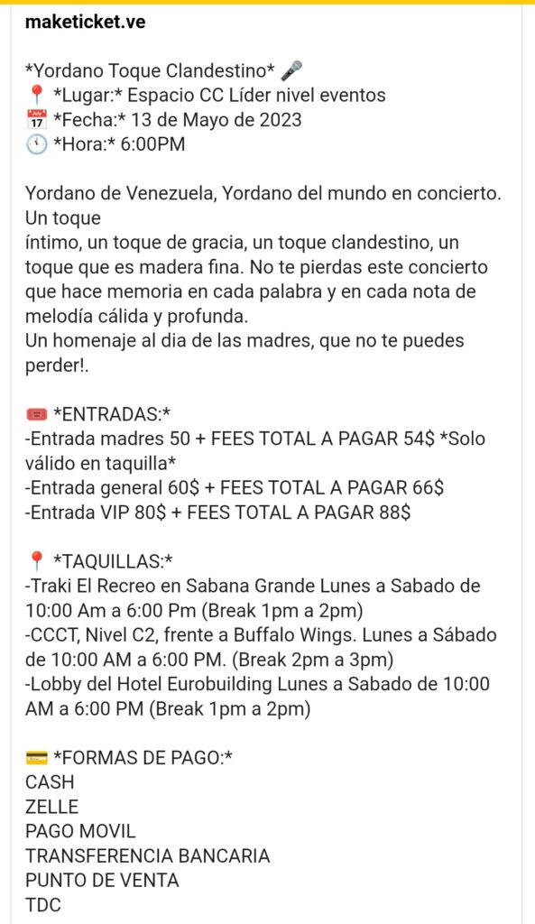 «Este será un concierto histórico para Caracas, debido a la presencia de Yordano y su banda; haciendo un repertorio especial dedicado a las madres. Eso no exime que sean sus clásicos la música central; pero pudiese ser un concierto muy acústico. El otro atractivo del concierto, es un secreto muy bien guardado de la ciudad de Caracas en las terrazas del Centro Comercial Líder«, expresó Araujo durante una entrevista en Unión Radio.